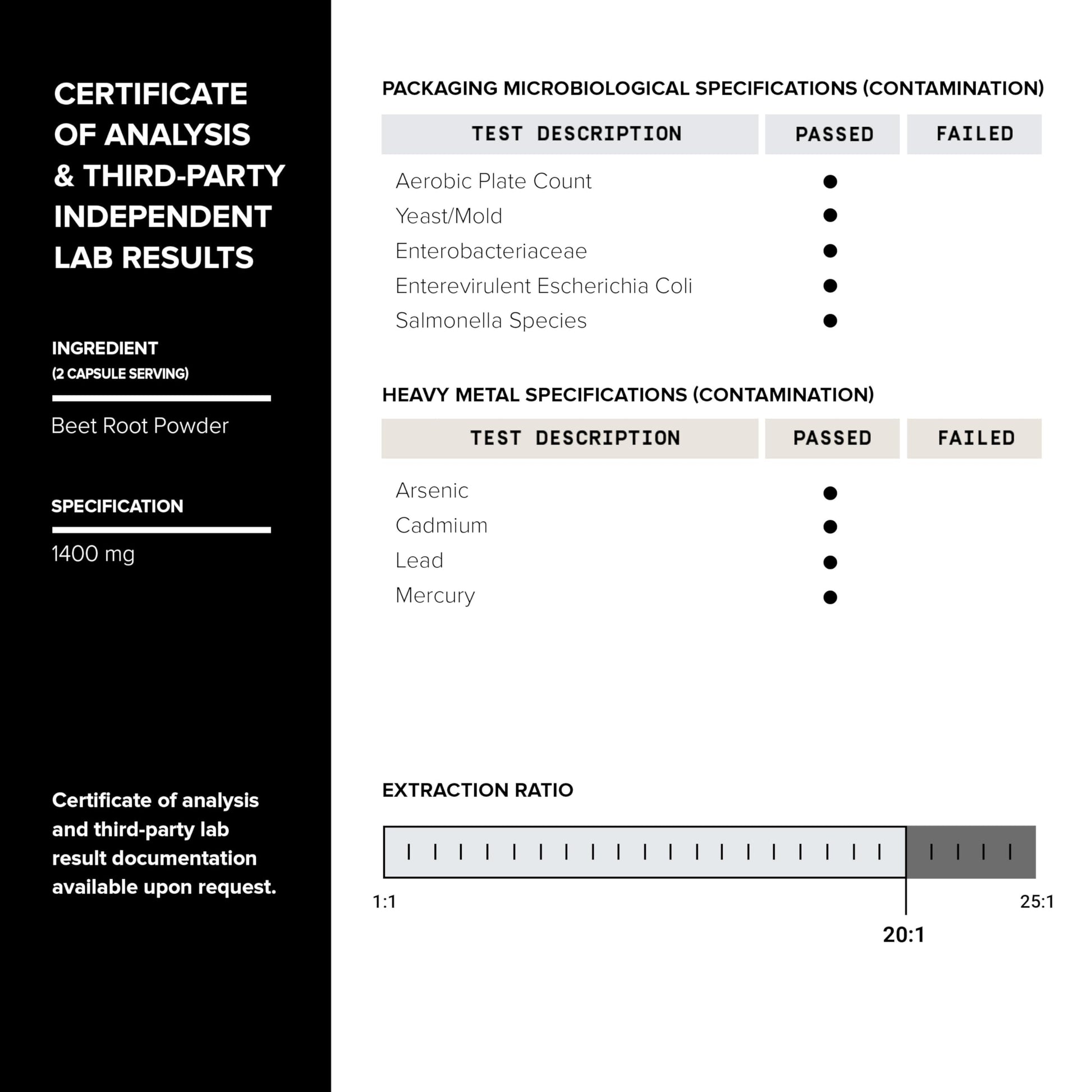 - Meet the Next Generation of Beet Root Powder - Toniiq Beet Root powder capsules bring some of the most potent levels of nitric oxide support on the market. Our 1400mg per serving Beet Root extract contains a whopping 20:1 extract ratio.