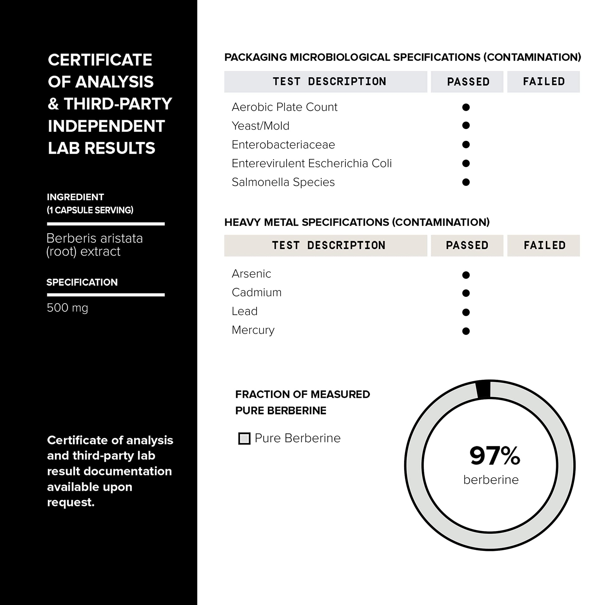- Setting a New Standard for Purity - To ensure that you are getting a high-quality Berberine 500mg supplement, each batch is tested for quality and purity both during and after manufacturing.